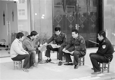 在今年征兵工作中,平桥区深入开展以“执行政策好、兵员质量好、廉洁自律好、群众反映好”为主要内容的“四好”活动,坚持规范征兵、廉洁征兵,注重思想发动,突出宣传走访。图为洋河镇人武部征兵小组在应征青年家庭开展宣传活动。