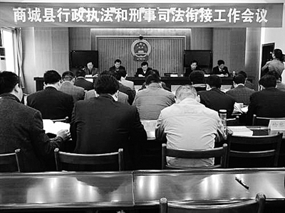 为了推动行政执法和司法衔接工作深入开展,近日,商城县行政执法和刑事司法衔接工作会议在商城县检察院召开,该县21家行政执法单位负责人参加了会议。 叶 虎 刘东辉 摄 |