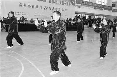 日前,潢川县教育系统教职工太极拳比赛在县体育馆成功举办,来自全县31个中小学的24个代表队260余名教职工参加了比赛。图为比赛现场。