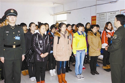 经网上筛选、面试初检两道“关”后,我市45名应征女兵日前参加了体检。据了解,经体检、政审合格后,应征女兵将被择优录取入伍,于12月20日前穿上军装,开始军旅生活。图为应征女兵集中准备体检时的情景。
