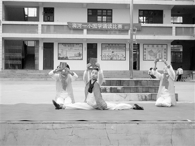 近日,浉河区一小举行了以“诵国学经典,振华夏雄风”为主题的国学经典诵读比赛活动。图为诵读比赛现场。