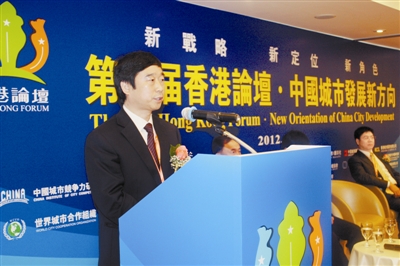 图为市长乔新江在第二届香港论坛上发表演讲。本报记者 杨 柳 摄 |