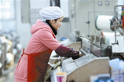 近年来,淮滨县产业集聚区着力打造具有淮滨特色的轻纺产业和食品加工业,目前已经成功吸引万和纺织、川大纺织、浙商纺织等52家企业入驻,今年1月至8月共实现主营业务收入39亿元,税收1.81亿元,吸纳21460人就业。一个功能分区明晰、基础设施配套、主导产业突出、管理水平先进的新型产业集聚区初具雏形。图为浙商纺织有限公司的工人正在喷水织布机前工作。