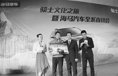 日前,骑士文化之旅暨海马汽车全系直销会在我市锦江国际酒店举行。由于直销会优惠幅度较大,导致现场气氛火爆,大量市民争相购买,短短几个小时,就有数百辆车售出。图为活动抽奖环节。
