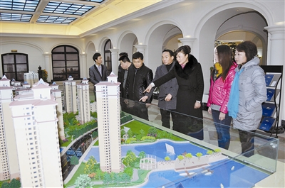 近日,信阳市大庆置业有限公司开发建设的“东方威尼斯”项目在固始盛大开盘。图为该公司副董事长程红(右三)向客户介绍楼盘时的情景。