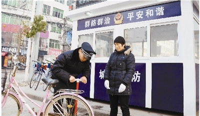 近日,为深入贯彻落实党的十八大精神,为民办实事、办好事,商城县在县城主要路口设置治安岗亭,主动为群众提供开水、自行车充气和求助等免费服务,给寒冷的冬日带来温暖。
