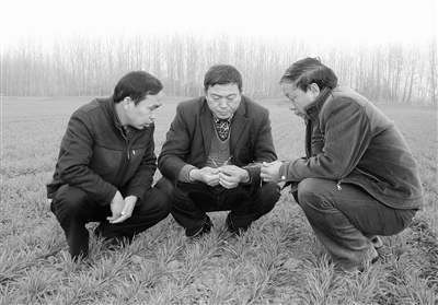 12月中旬,息县部分农户反映麦苗发黄并逐渐死亡,市农科院小麦专家、国家小麦产业技术体系信阳综合试验站团队成员立即赶赴息县城关镇、项店镇、白土店乡、东岳镇实地察看,及时找出麦苗发黄死亡的原因,并就防治措施对乡村技术员和农户进行了指导。图为市农科院专家在白土店乡夏寨村现场察看苗情。
