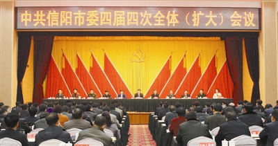 本报讯(记者 方慧玲 见习记者 高晶晶)1月7日,中国共产党信阳市第四届委员会第四次全体(扩大)会议在市行政中心举行,会议深入学习贯彻党的十八大精神,审议通过《中共信阳市委关于深入学习贯彻党的十八大精神,勇当中原经济区建设前锋的决议》,讨论审议《市委常委会2012年工作情况报告》。
