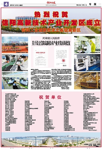 热烈祝贺 信阳高新技术产业开发区成立