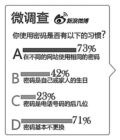 “本想着用一个密码记着方便,谁知道邮箱被盗,淘宝、微博、网游账号全丢了……”网友“@兰花卫士”日前在微博上留言称自己密码被盗。就密码安全的相关话题,引发网友关注,不少网友表示自己的密码也被盗过,也有网友希望了解如何保证密码安全。