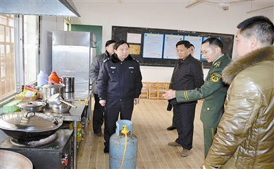 1月8日,淮滨县政府有关负责同志带领县公安、县消防、县安监、县民政和县文化等部门负责人,先后深入辖区寄宿制学校、幼儿园,养老院、福利院等人员密集场所进行实地检查,消除隐患,确保人民群众生命财产安全。图为检查时的情形。