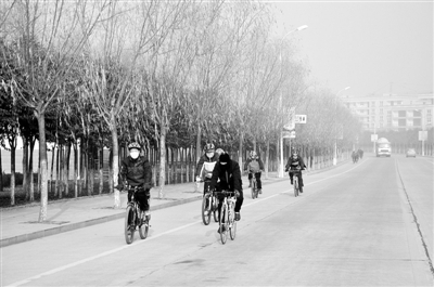无论在城区街道还是在郊区大路上,时常能看到自行车运动爱好者的身影,他们在骑行过程中,你追我赶,相互较劲、相互鼓励、相互影响。图为我市自行车运动爱好者骑行时的情景。