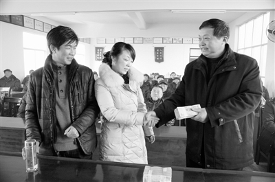 春节将至,光山县仙居乡长兴镇村第一书记吴进军和妻子杜鹃(中)一起来到村里看望乡亲们,并把他三年来的工资和补贴共计10万元捐献给村敬老院。在他的感召下,妻子杜鹃又拿出3万元一起捐给了长兴村敬老院。夫妻俩的义举感动了乡镇干部,也赢得了父老乡亲的赞誉。