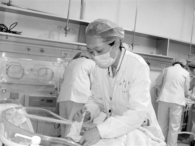 信阳职业技术学院附属医院儿科主任王湘蓉,在从事儿科临床20多年的工作中,始终坚持“以病人为中心”的服务理念,努力钻研业务,擅长于儿科各种疑难病的诊治及对急危重患儿的抢救,在新生儿重症监护,尤其是在早产儿监护与治疗方面,特别注重综合管理,其技术水平位居全市前列。近年来,在她的带领下,儿科成为技术先进、专业全面、特色突出的信阳市儿童疾病治疗中心,其科室荣获该院“2012年度综合目标考核”一等奖。图为王湘蓉在对患儿进行认真检查。