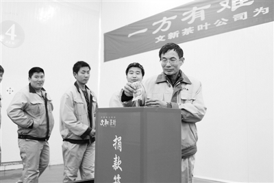 4月22日,信阳文新茶叶有限责任公司组织员工为四川雅安地震灾区捐款。该公司在北京、上海、武汉、郑州等各地分公司的员工也纷纷捐款,向灾区同胞献爱心。
