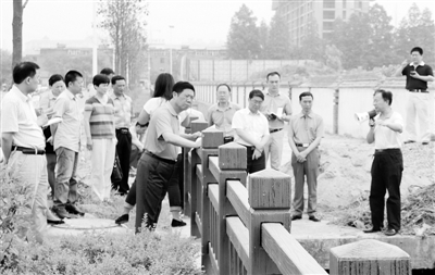 日前,浉河区部分人大代表深入车站办事处辖区,视察内河防汛工作。图为人大代表在化工沟内河现场视察情景。