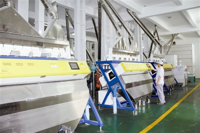 图为商城县产业集聚区内现代化的生产车间里,工人们正在工作