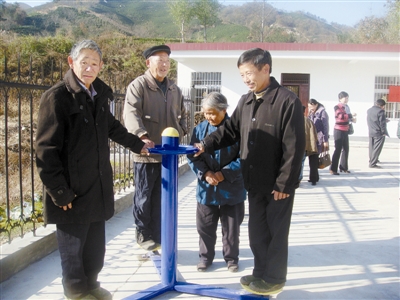 时下已进入初冬,我市住在敬老院里的老人们不仅吃得饱、穿得暖,还在管理人员的指导下,做一些小幅度健身锻炼。图为昨日浉河区浉河港镇敬老院的老人们围在健身器材上一边做着健身,一边晒暖聊天。