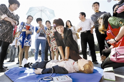9月22日,新县健康促进县建设项目正式启动。该县积极引导群众树立“我的健康我做主,争做健康明白人”的理念,养成健康文明的生活习惯。图为群众在活动现场学习突遇昏迷病人,如何抢救时的情景。