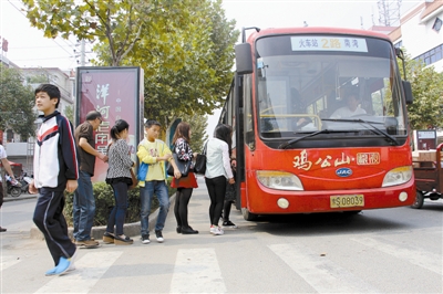 图为2路公交车站牌旁,市民自觉排队,有序上车。见习记者 张馨月 摄