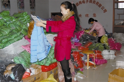 11月11日,光山县晒尚羽绒电子商务有限公司工作人员正在给客户发送产品。据统计,该县今年“双十一”有1500余家羽绒电商在网上销售产品,销售额超过8000万元。