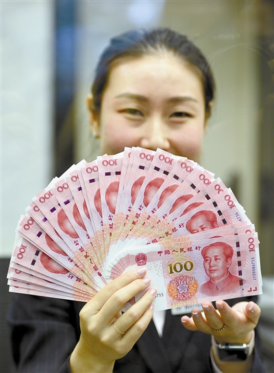 11月12日,交通银行北京市分行营业部的一名柜台工作人员隔窗向记者展示新版百元钞票。 新华社记者 李鑫 摄