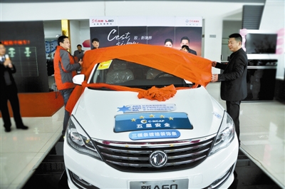 11月14日下午,经全新雕琢,集超性价比、超低油耗、超大空间、超高颜值于一身的东风风神全新A60在信阳鑫道风神专营店荣耀上市。东风乘用车及专营店领导出席本次上市发布会,并于现场参与新车揭幕环节。全新A60共推出A14T、A15、HR16三种动力共5款车型。图为上市会现场。本报记者 刘远强 摄