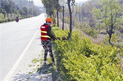 工作人员正在修剪公路两旁的绿化带,确保公路沿线风景美观。 |