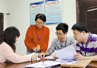 11月26日,福州市仓山区纪委党风政风室工作人员对一名被立案调查人员(左一)就“违规发放过节费问题”进行错误事实认定。今年以来,福州市仓山区纪委共组织诫勉谈话、廉政谈话141人次,查处违反八项规定问题11起,问责21人,给予警告、严重警告等党纪政纪处分和组织处理共26人。 新华社记者 张国俊 摄