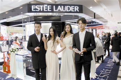 图为模特在雅诗兰黛专柜前展示护肤产品。 本报记者 叶 红 王 婷 摄 |
