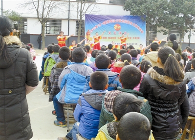 日前,丰集镇第二小学操场上一台精彩的法制文艺节目正在这里上演。这是商城县司法局加大举措,丰富形式,深入宣传,围绕“弘扬宪法精神 推动创新、协调、绿色、开放、共享发展”这一活动主题,首次将法制文艺节目送进校园,把宣传宪法知识、十八届三中、四中、五中全会精神、美丽乡村、文明城镇、幸福商城建设以及教育群众学法、守法、用法、树立法制观念等用具有�