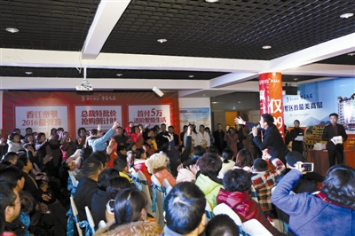 本报讯(谭杏)1月10日下午1时,“千人微众筹,狂抢0首付”香江帝景3期墅景高层众筹暨9折狂购盛典隆重举行。当天来到现场的有香江帝景的客户、业主和参与众筹的报名者以及《信阳日报》、信阳交通电台、腾讯网、搜房网等十几家媒体近500人共同见证了这场狂购盛典。