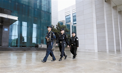冒雨巡逻