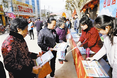 2016年2月20日,出山店水库移民局工作人员下乡宣传移民安置政策。