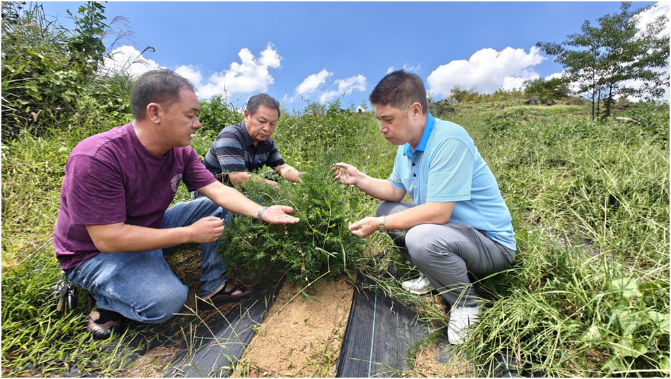 图为桂林市林业和园林局工作人员实地查看天冬长势
