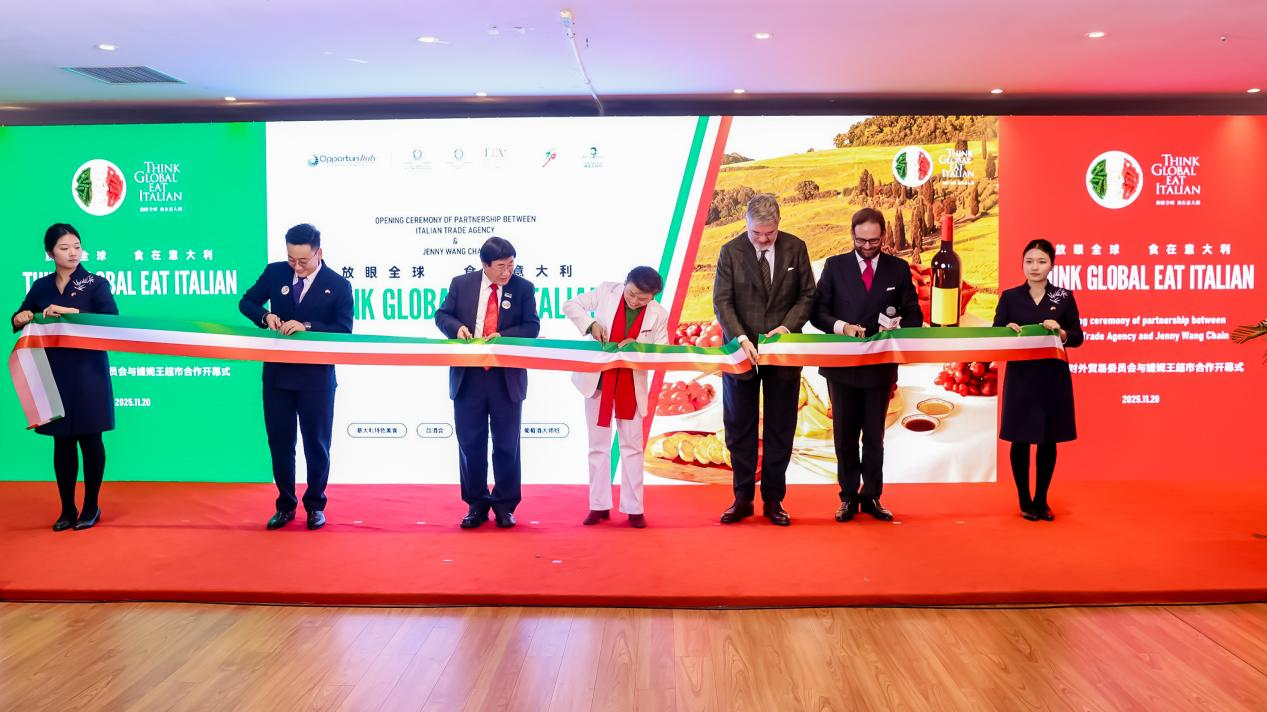 (北京,2025年11月20日)意大利对外贸易委员会与婕妮王超市共同宣布,正式启动为期14个月的“2025意大利产品推广年”。意大利驻华大使安博思阁下、意大利对外贸易委员会贸易协调官彭飒彬先生、婕妮王超市创始人兼董事长王建英女士等嘉宾出席启动仪式并致辞。本次活动以“放眼全球,食在意大利”为主题,旨在通过一场深度、系统的美食文化之旅,让中国消费者全方位感受“意大利制造”的卓越品质与独特魅力。